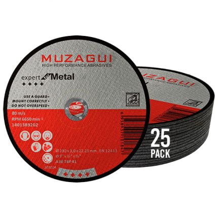 Marca MUZAGUI (USA) Diámetro del Disco 230 mm Espesor 3,0 mm Diámetro Central 22,23 mm RPM máx. (min-1) 6.650 Velocidad